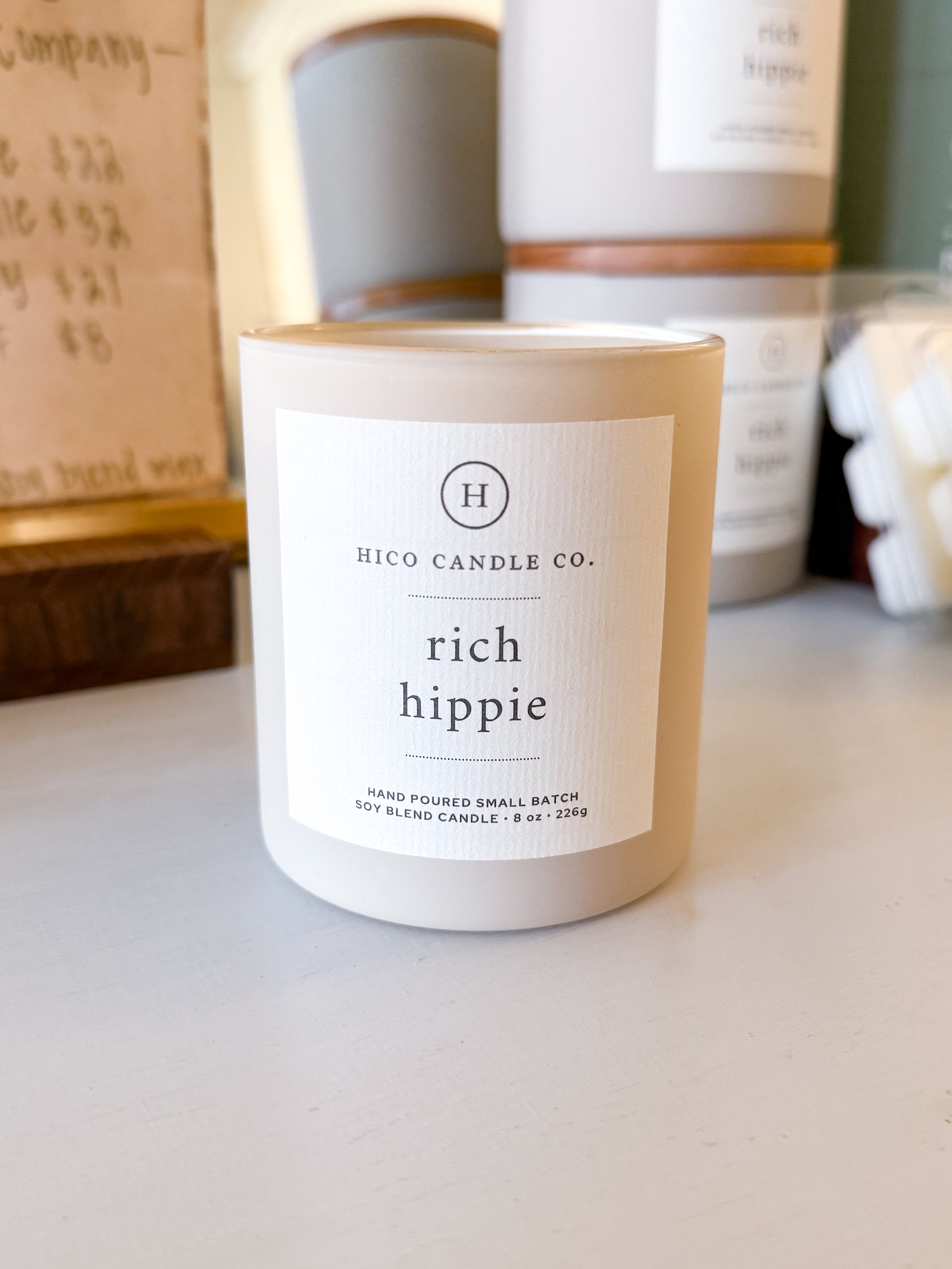 Inspired by Flower Bomb. Explore the bohemian spirit with Rich Hippie. A radiant blend of bergamot, jasmine, freesia, and rose combine to create an uplifting fragrance that fills your space with positivity and free-spirited energy.