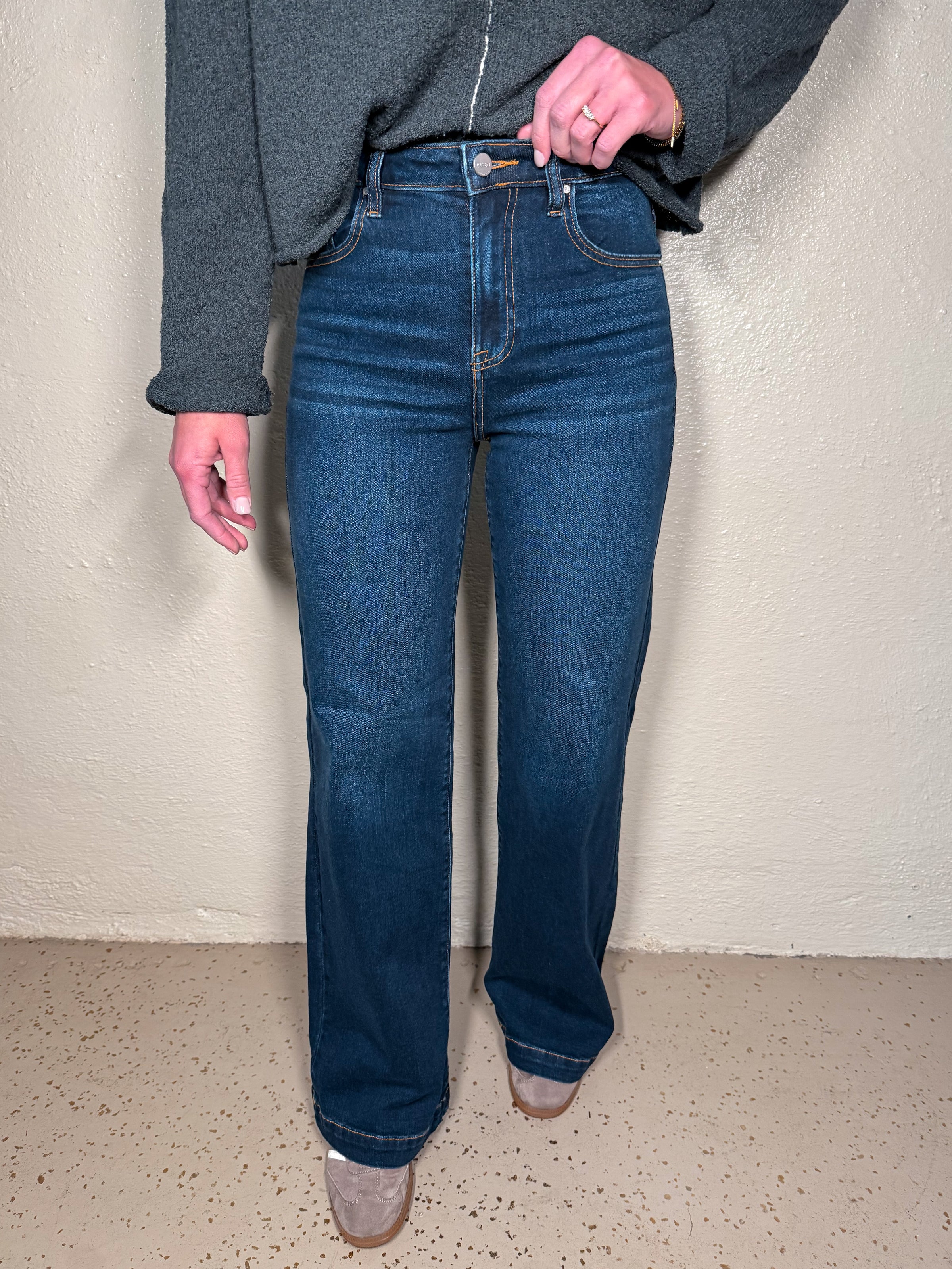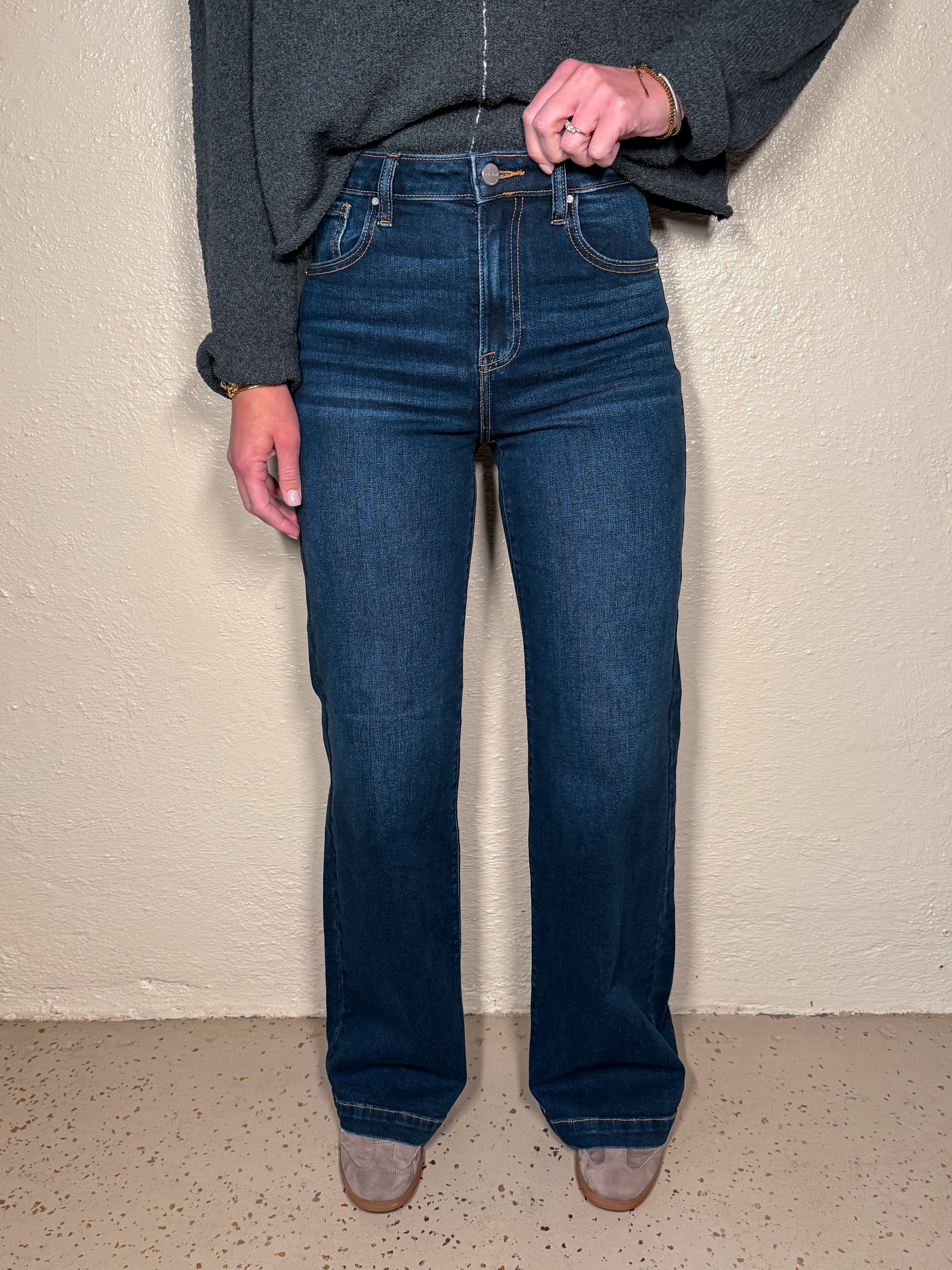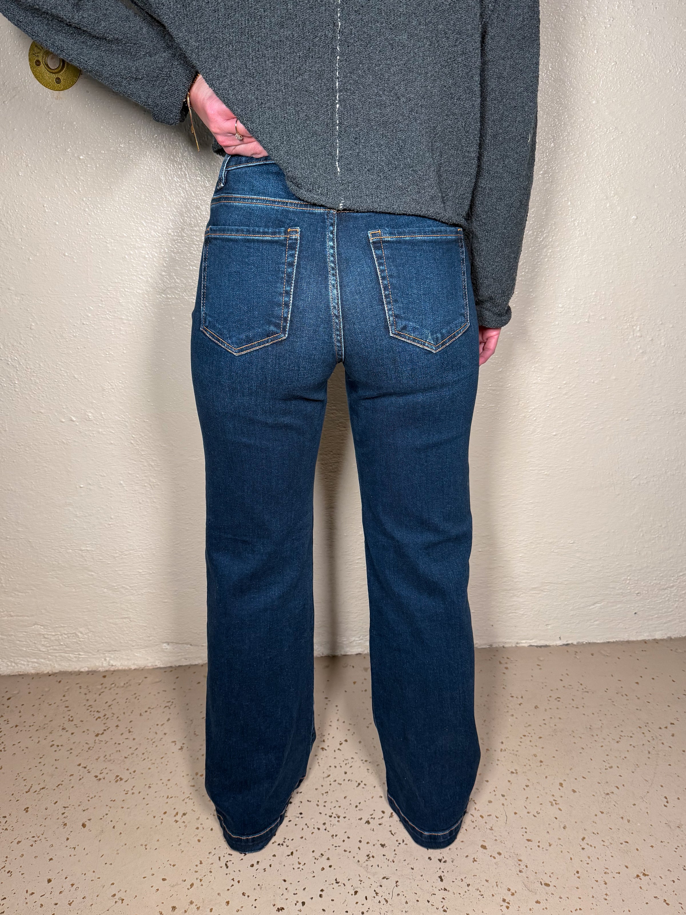 RISEN - High rise wide leg jeans.